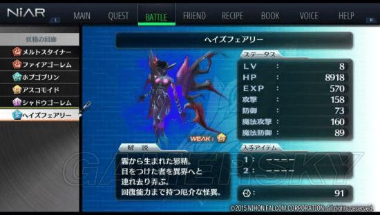 | 战斗笔记 | メルトスタイナー、ファイアゴーレム、ボブゴブリン、アスコモイド、シャドウゴーレム(S グリード)、ヘイズフェアリー(BOSS) |
