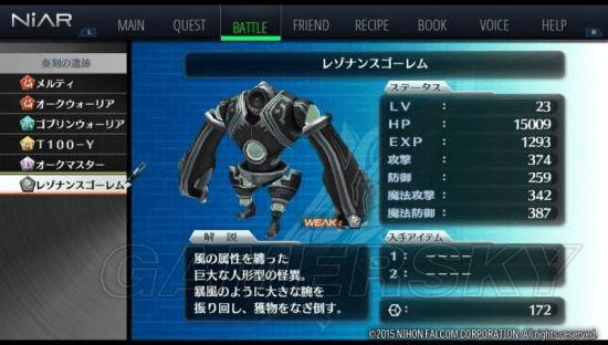 | 战斗笔记 | メルティ、オークウォーリア、ゴブリンウォーリア、T100-Y、オークマスター(S グリード)、レゾナンスゴーレム(BOSS) |