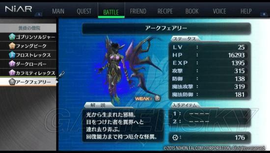 | 战斗笔记 | ゴブリンソルジャー、ファングビーク、フロストレックス、ダークローパー、カラミティレックス(S グリード)、アークフェアリー(BOSS) |