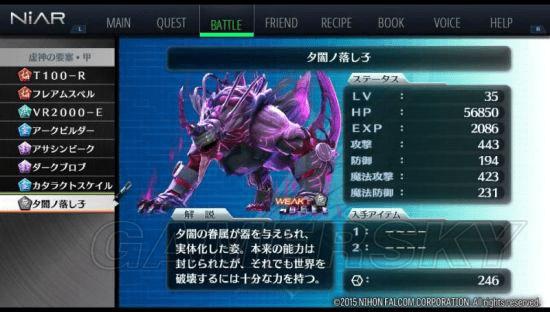 | 战斗笔记 | T100-R、フレアムスペル、VR2000-E、アークビルダー、アサシンビーク、ダークブロブ、カタラクトスケイル(S グリード)、夕闇ノ落し子(BOSS) |