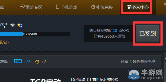 1、每天在TGP的个人中心签到,连续签到有额外奖励。签到位置在这里。