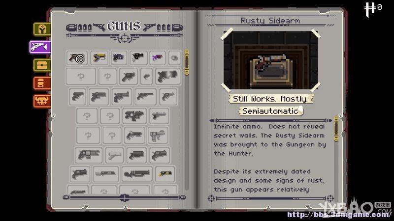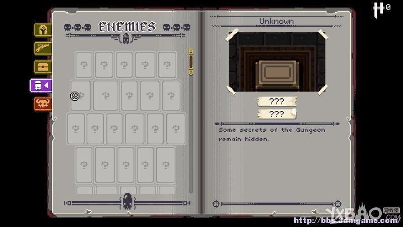 敌人/BOSS:类似于枪械/道具界面,当玩家遇到过的敌人及BOSS之后,在这个敌人/BOSS名录中就会出现这些敌人/BOSS的详细资料以及图片。