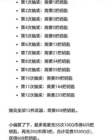 cf千变轮回全抽完要多少钥匙?千变轮回全抽QB计算。最近cf千变轮回抽奖活动点燃了玩家的心,都想全部抽,那么抽完12次需要多少钱?下面一起来了解一下全部抽奖所需钥匙数量计算吧。