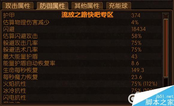 4500血+常驻物理40%躲避+常驻法术46%躲避+常驻34%物理减伤+35%闪避+11%格挡+170%左右全抗(吃了元素要害也是满抗)+20%混沌抗+36%移速