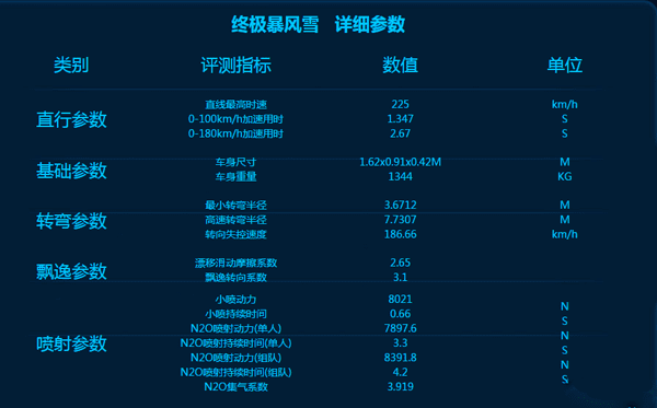 S终极暴风雪在车身上比暴风雪更长 手感也更好 大喷特效也是一大特色 试赛车在喷射氮气过程中更美观 是一部神车!