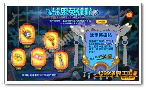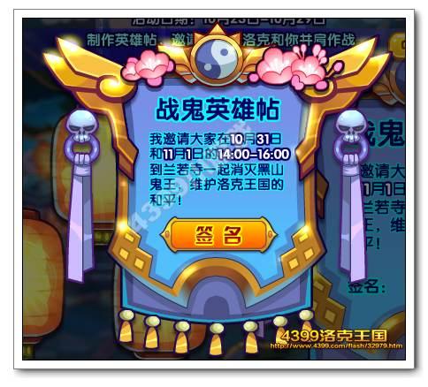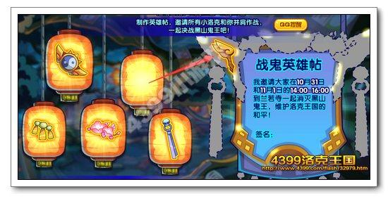 制作英雄帖,邀请所有小洛克并肩作战,在10月31日--11月1日的14:00-16:00在兰若寺决战黑山鬼王。