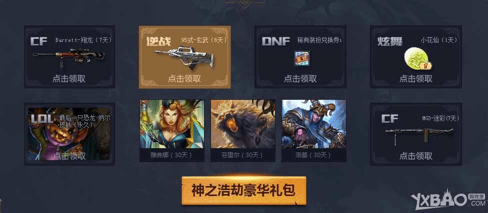 活动期间注册并达三级的用户可选择心仪游戏限量礼包,若礼包今日已抽完,则默认获得神之浩劫豪华礼包