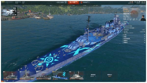 战舰世界海雾化计划之高雄级海雾巡洋舰爱宕号《战舰世界》的高雄级巡洋舰爱宕号海雾涂装参照了《苍蓝钢铁的琶音》的高雄蓝色海雾涂装。