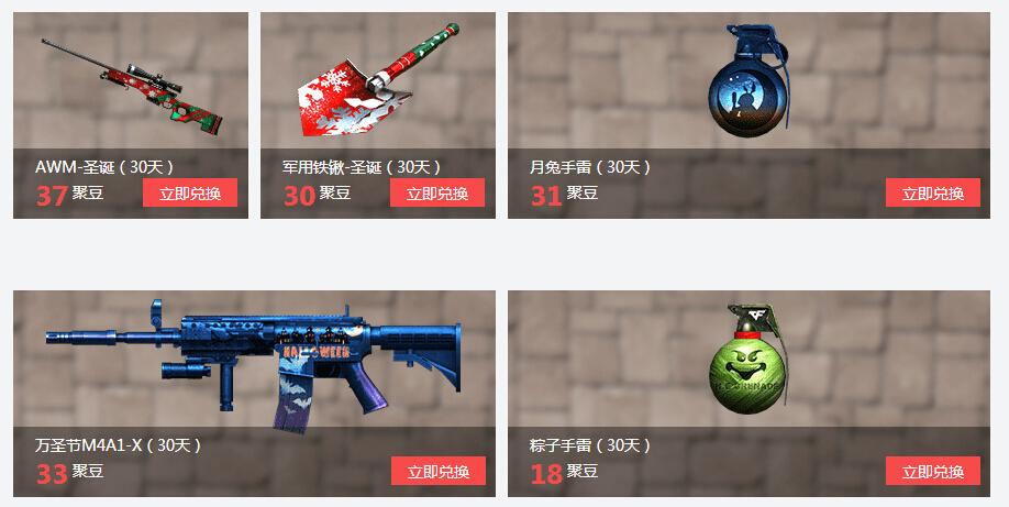 CF道聚城近期推出了攒聚豆,兑换穿越火线道具活动。活动奖品包涵:AWM-圣诞,军用铁锹-圣诞,月兔手雷等穿越火线稀有道具奖励。