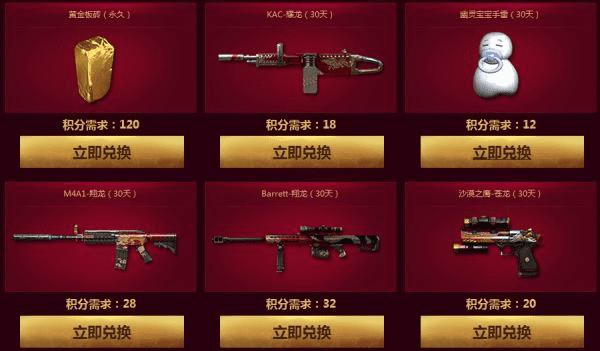 不想竞拍那就兑换吧怎么样?竞拍区的激烈程度是不是很疯狂,以为自己稳稳得拿到了转眼价格飙升哇…… 没关系,这里是属于你的自由天空,想要的武器可以直接使用积分兑换,再也不怕别人来抢了。所有道具数量有限,兑完即止。