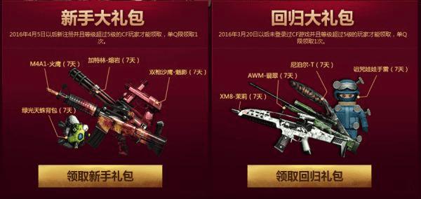 4.2016年4月5日以后新注册并且等级超过5级的CF玩家才能领取,单Q限领取1次。2016年3月20日以后未登录过CF游戏并且等级超过5级的玩家才能领取,单Q限领取1次。