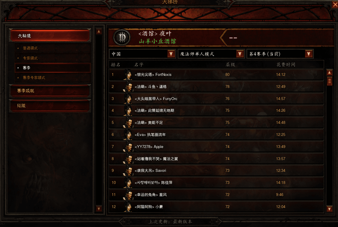 今日下午国服天梯传来捷报,魔法师玩家FortNoxis成为了首个突破个人天梯80层的玩家,耗时14:12,理论上依然存在上升的空间。这也是历史版本以来首个单人突破80层的玩家与职业。