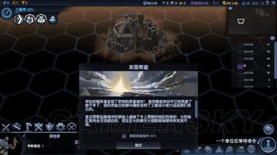 首都完成第一个士兵,选择右上方的未知海域去探索,很可能会有资源舱