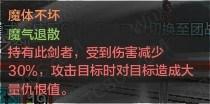 当前置四把剑召唤完毕之后会召唤雌雄双剑,这个时候还是需要有人负责拉BOSS,剩下的两个团队的人每个队负责一把剑的破定,完了之后拔剑传功,拿到BUFF。当拥有雌雄双剑BUFF的两个人千万不要碰到一起否则会造成全部队友定身,无法移动。