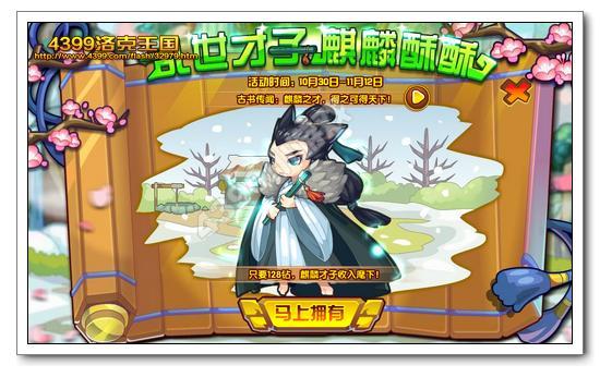 洛克王国乱世才子 麒麟酥酥 古书传闻:麒麟之才,得之可得天下!只要128钻,麒麟才子就可收入麾下。