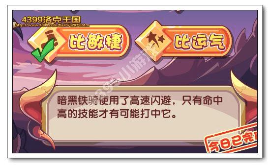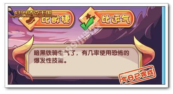 完成比智、比力量、比敏捷、比运气四个挑战即可获得暗黑骑士。PS:每天只能挑战一次。