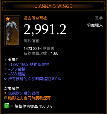 解释一下这把新弩枪的机制:开启暗影之力后会触发烟雾弹,并且享受符文效果,另外,带上这把弩枪后,翅膀会有一个3秒的冷却时间。