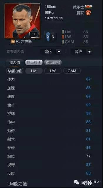 大家先看下吉格斯能力值,总的说来,吉格斯光从能力值上看,算是一个非常优秀的边前卫/边锋、也可以打前腰,然后下面我把韩服10U贝尔、06W菲戈与06W卡卡的能力值贴上来进行比较。