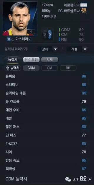巴萨的10U马斯切拉诺,除了控球、长传与视野三项外,其他数值与巴特不相上下,菲尔·内维尔的优势在体力与人盯人,目前10U小马哥在韩服价格为900W左右。