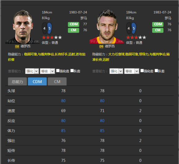 FIFAOnline3赛季08与09德罗西属性有什么区别?