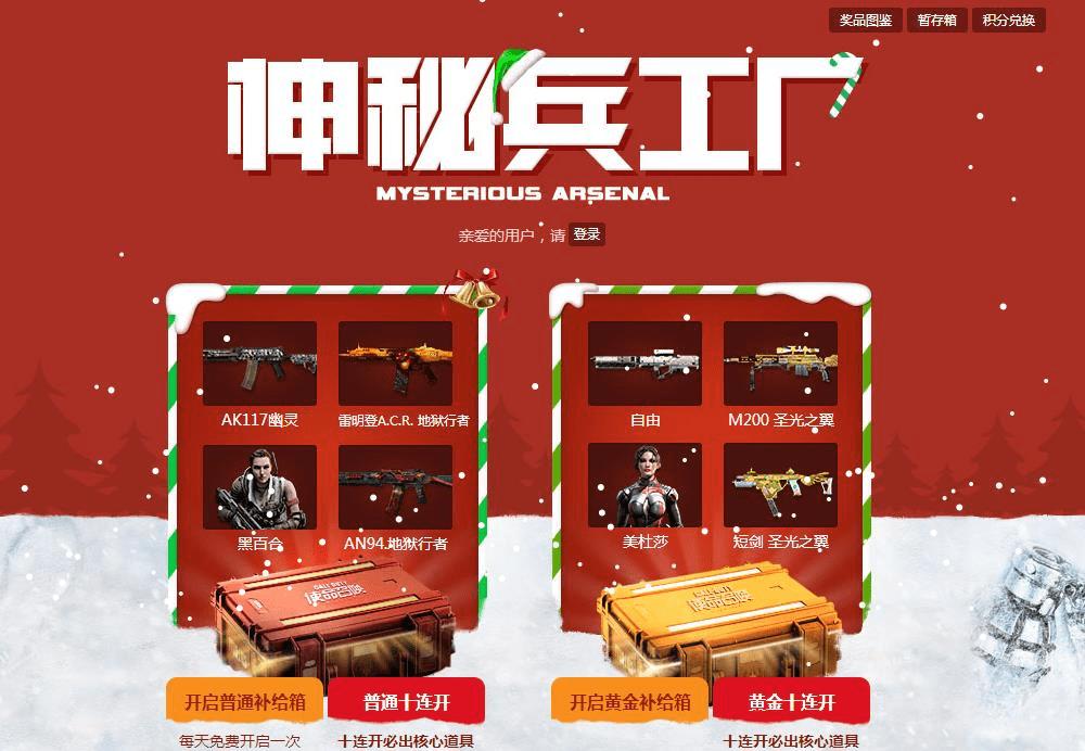 使命召唤召唤神秘兵工厂圣诞版地址的详细介绍 来源:www.45fan.com 2016-08-16 07:41:16 使命召唤召唤神秘兵工厂圣诞版地址的详细介绍 《使命召唤OL》神秘兵工厂圣诞版,同一哥游戏ID每天只有一次免费抽奖机会。工作、学习很忙没时间上游戏,照样可以抽奖品。神秘兵工厂圣诞版地址:>>>点击进入 《使命召唤OL》神秘兵工厂圣诞版,同一个游戏ID每天只有一次免费抽奖机会。工作、学习很忙没时间上游戏,照样可以抽奖品。 神秘兵工厂圣诞版地址:>>>点击进入 以上是小编为大家整理的使命召唤OL的具体内容,你的耐心观看就是对小编最大的支持。如果大家想了解更多游戏活动与游戏攻略,请持续关注本站。更多精彩内容,尽在路饭游戏频道! 推荐阅读 王国珍稀珍稀孵蛋能出的东西介绍 如何处理魔兽世界7.0神秘莫测任务方块卡 使命召唤OL心悦俱乐部年末活动内容有什么 使命召唤ol新机械战士有哪些? 使命召唤OL新地图高楼跳点教学的详细介绍 使命召唤ol新模式有哪些? 如何做魔兽世界肯瑞托的神秘莫测世界任务 怎么样做魔兽世界7.0肯瑞托神秘莫测任务 使命召唤OL感谢一路送百万Q币好礼活动内 使命召唤OL电脑管家机械狂潮全面开战活动