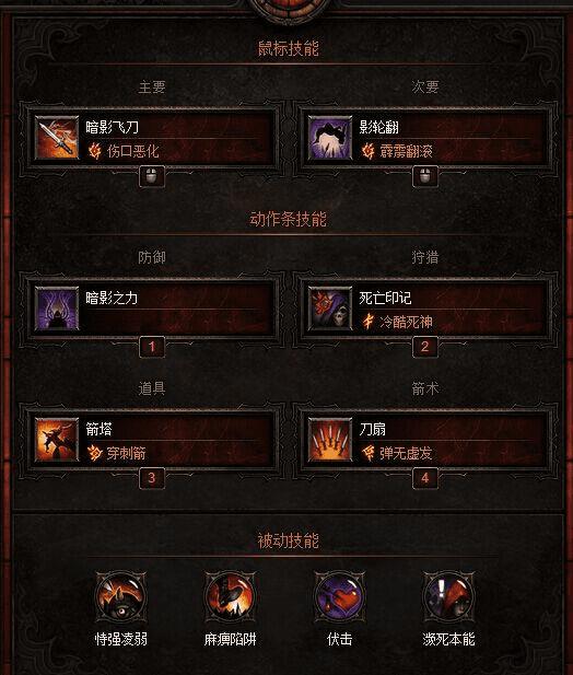 通过刚才的伤害分析,我们知道,暗影刺客的伤害应该以刺穿为主,其他技能辅助,