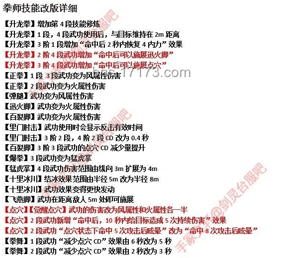剑灵新版本拳师控制点穴伤筋动骨改动内容有哪些?