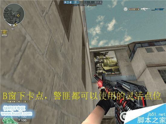 2、我们加入后第一时间先去离自己复活近的保卫者点位进行卡点窥探,以黑色城镇这张地图为例:如在B房门外的观察可以第一时间发现对方是否RUSHB区,RUSH的速度是非常快的,如果你在拉出去的瞬间看到有2人或者更多,那么一定是打B区了。这时应该迅速缩回B区进行卡位。这里切忌投掷武器使用或拉出去钢枪。毕竟狙击手不会再给你第二次跳出B房的机会。下面图片介绍几个包点卡位,希望对友友们有帮助。