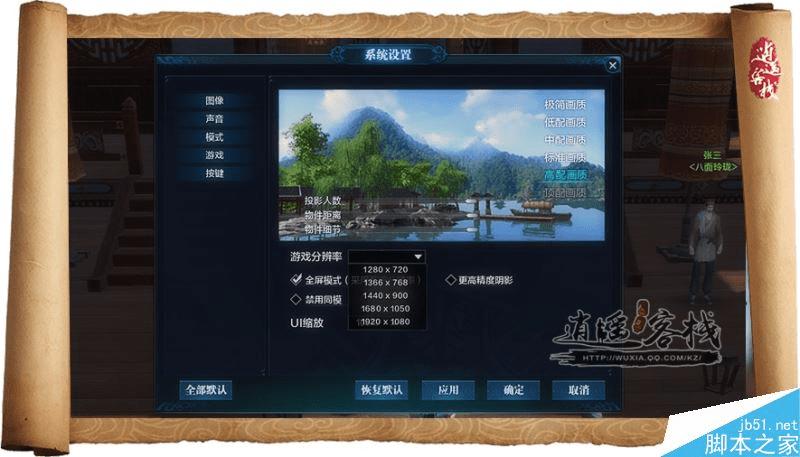在我们安装好客户端之后,游戏系统是默认的全屏模式进行游戏,全屏模式时,分辨率为电脑系统分辨率。