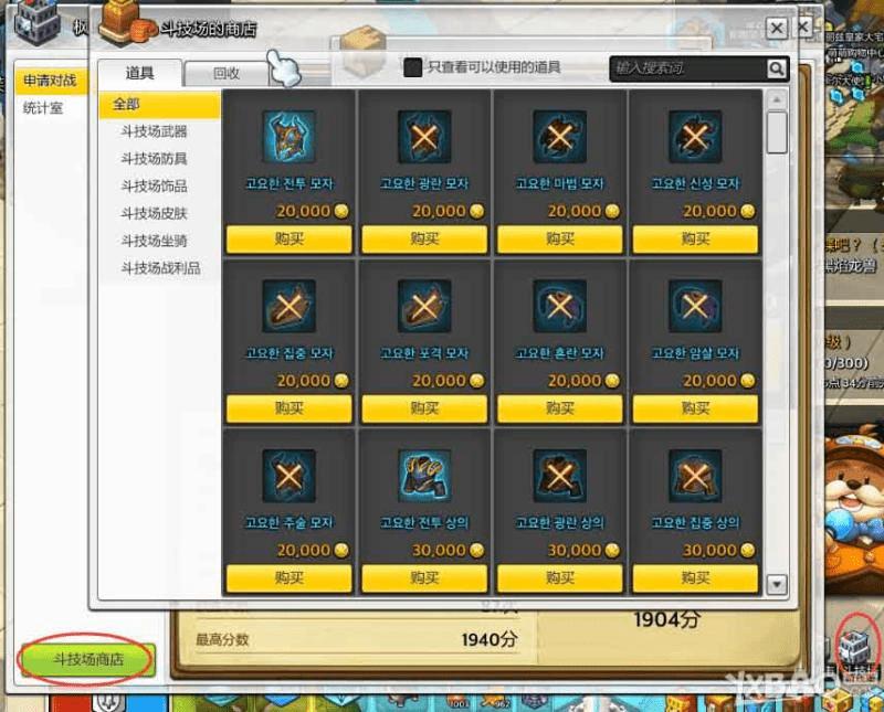 游戏界面的右下角有个斗技场点进去,就会出现如下图所示的窗口,店家申请对战就会进入和LOL一样的匹配等待状态,这时候你可以打打单人本。