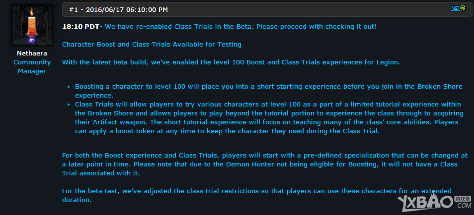 在beta服务器上,我们放宽了职业试玩的限制以方便玩家进行更长时间的体验和测试。