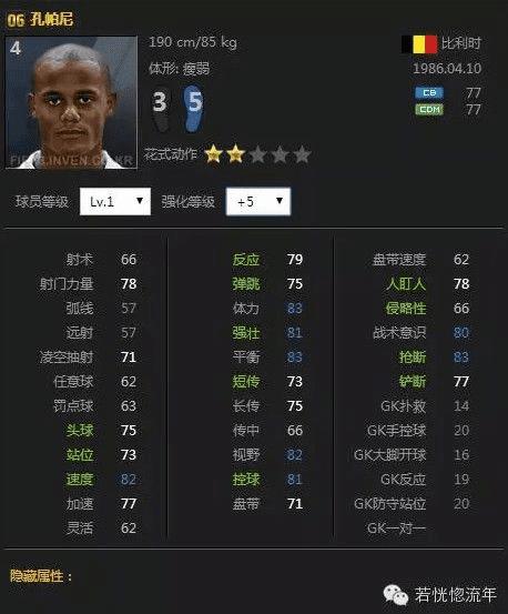 一级银卡06孔帕尼的数据,一个可以覆盖中后场所有位置的球员,双速可达82、77几乎不会被对面前锋用速度生吃,边后卫也是可以完美胜任,作为后腰来说的话,良好的模型以及充沛的体力会让你特别有安全感,加上稳健的防守,他称得上是中后场的超级多面手。补充对比孔帕尼的两个赛季卡简单来说07好在强壮以及普通的体型,这让他在实战中拥有更出色的对抗能力,而06的优势是防守能力更好速度更快灵活更高等,都是蛮不错的,今天是总结超级多面手,06的这个边后卫级别的速度让我把06孔帕尼放到这篇文章啦。