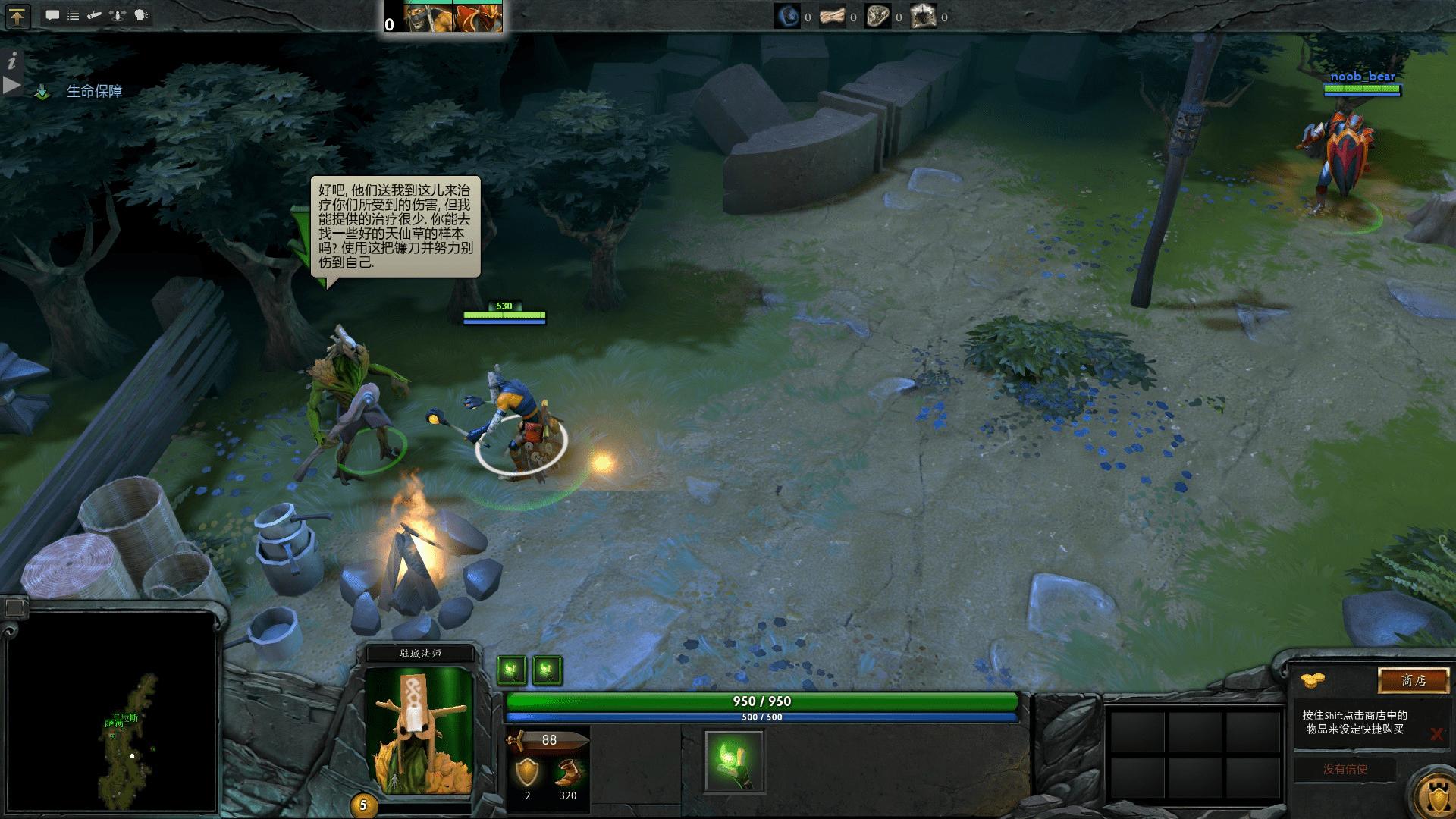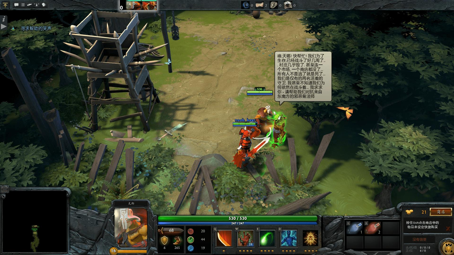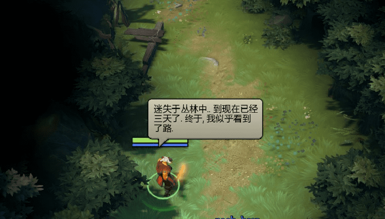 熟悉了游戏操作,我们穿过了一片树林,来到了一个几近沦陷的村庄。村庄的人希望我们能够帮他对付东南方向的邪恶法师。