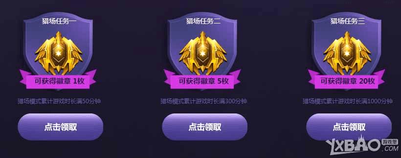 猎场挑战任务:活动期间,猎场模式的累计游戏时长满足如下要求即可领取挑战徽章。