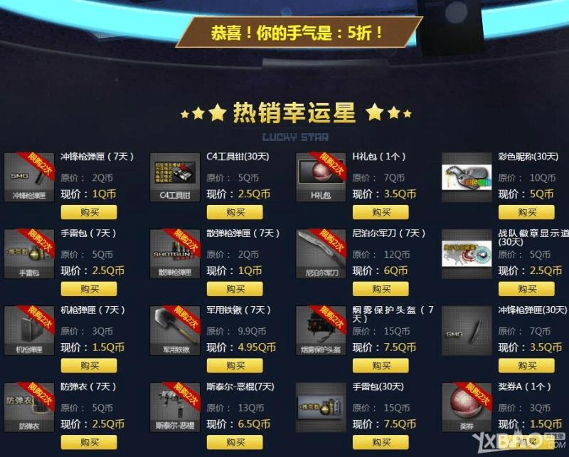1.活动中的折扣与道具均为随机生成,每个人的都是不一样的。