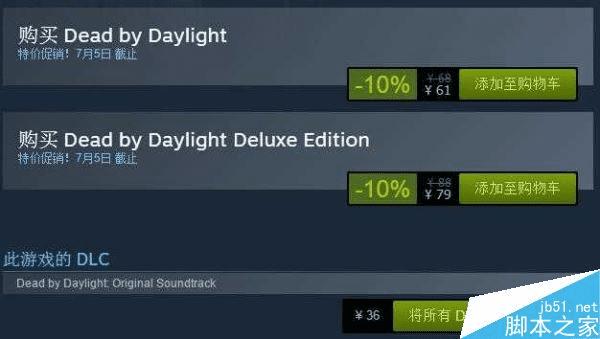 以上就是小编给大家带来的黎明杀机steam多少钱 黎明杀机版本价格介绍的全部内容了,希望大家喜欢,祝大家生活愉快!更多实用攻略,更多最新消息请继续关注JB51!