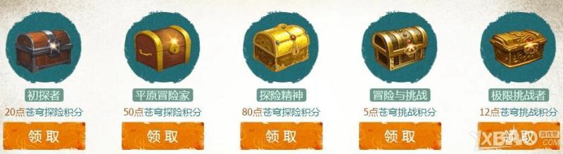 每天最多可领取5点探险积分,1点挑战积分;累积满以下点数即可领取对应礼包