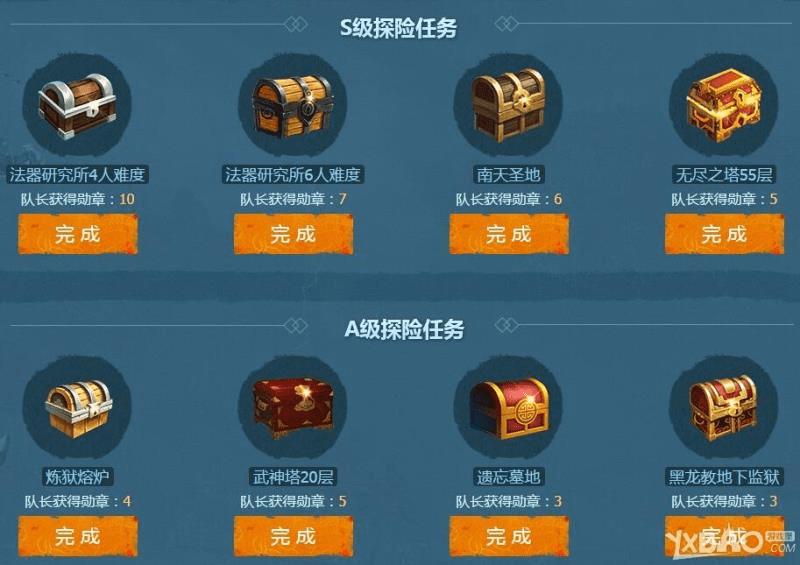 小分队队员能完成以下探险任务并获得礼包,完成后可为队长赢得探险勋章;队长获得的勋章可用作兑换奖励;