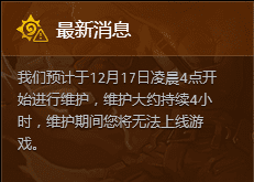 我与预计于12月17日凌晨4点开始进行维护,维护大约持续4个小时,维护期间您将无法上线游戏。
