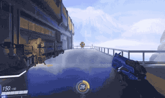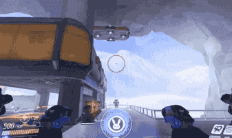 对于上方空间开阔的守点图,可以考虑向半空中投放,因为一般来说除了有法鸡,谁也不会往天上看到,这样一来,直到机甲快要落地,对方才能在视野中看到警告,如gif图所示,从看到球开始,大约有0.5秒的反应时间。并且D.VA大招时念的语音声音极小,放大招的距离又非常远,所以效果很不错。而且对于飞在空中的球,莱因哈特也是束手无策的,不会出现机甲被莱因哈特的冲锋推走的情况。