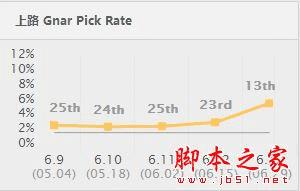 攻略前言纳尔算是一名比较全能型的上单了吧!能消耗、能风筝、能抗住伤害、能回血(指的形态转换时回血)、能控制,最重要的还是卖萌,但是因为版本原因,比他强势的上单太多了,目前来说他在国服的出场率还是比较不乐观的,不过吧!6.13版本这一次改动,让纳尔得到了新的转机,我们可以看到下面的韩服纳尔上单出场率与胜率数据中,都有了明显上升趋势,说明改动后的纳尔还是有非常大的可玩性。