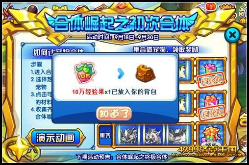 洛克王国合体崛起之初次崛起 集合体宠物,还可以领取丰厚的经验果实和进化晶石奖励哦!