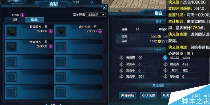 可以兑换金色砭石、紫色心法通用残页、天涯地理志书籍。