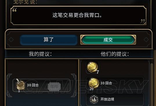 AI在第3步给的东西其实是想交易我第2步放上去的东西,但是游戏设定金币不能和金币互相交易,所以AI的金币放上去以后我给的金币就被撤销掉了