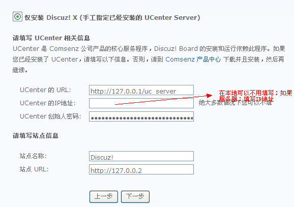 请返回输入 UCenter 的IP地址:如果不出意外进入下一步