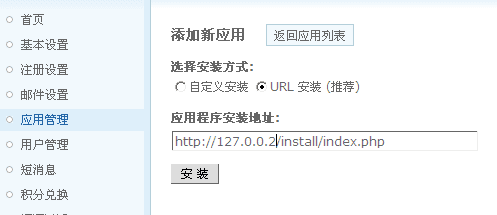 先完整安装一个discuz系统;进入ucenter;添加应用: