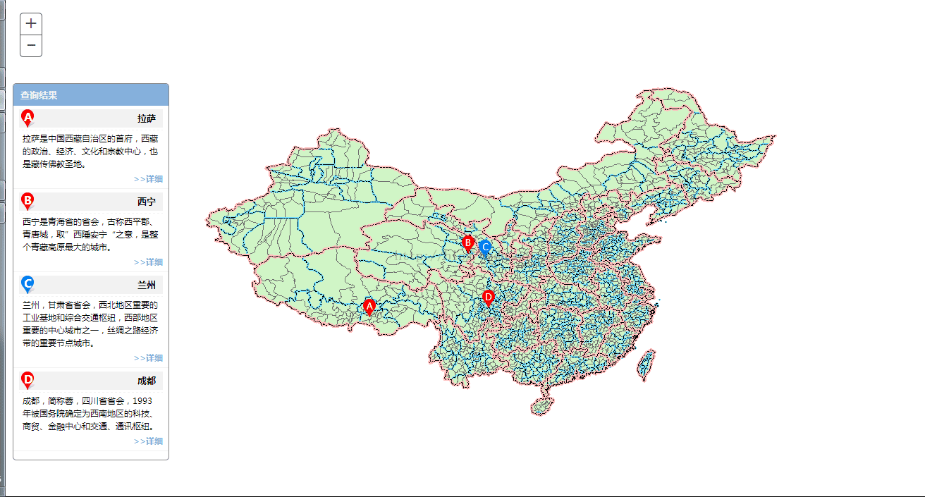 鼠标经过列表时,修改列表图标,并根据列表返回的值在地图上绘蓝色的marker;鼠标移出,修改列表图标为红色,清空地图marker图层。
