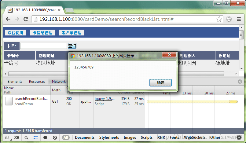 第二张,使用127.0.0.1:8080:8080/cardDemo/searchRecordBlackList.html#访问的时候: