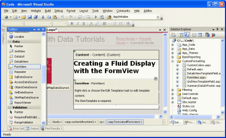 就像我们在本节中看到的那样,在显示一个单独的记录的时候,FormView提供了一种更加复杂的的呈现方式。在今后的教程中我们将解释一下DataList和Repeater控件,它们可以提供跟FormView一样复杂的呈现,不过它们可以显示多列(就像GridView那样)。