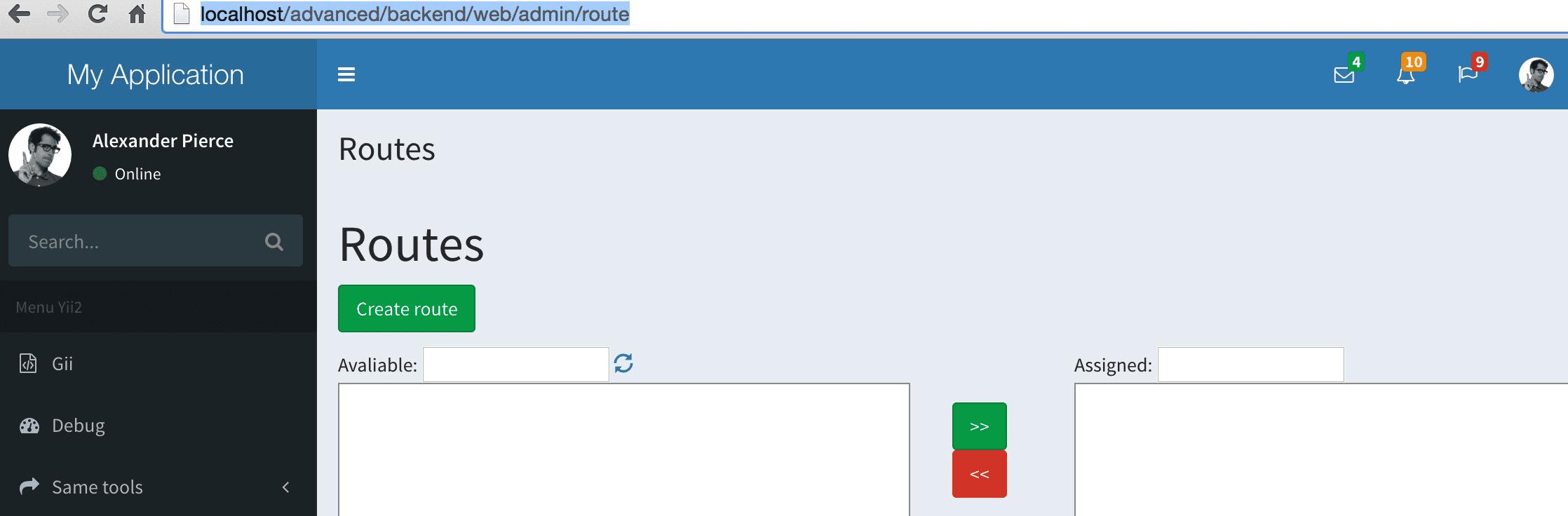 http://localhost/advanced/backend/web/admin/route